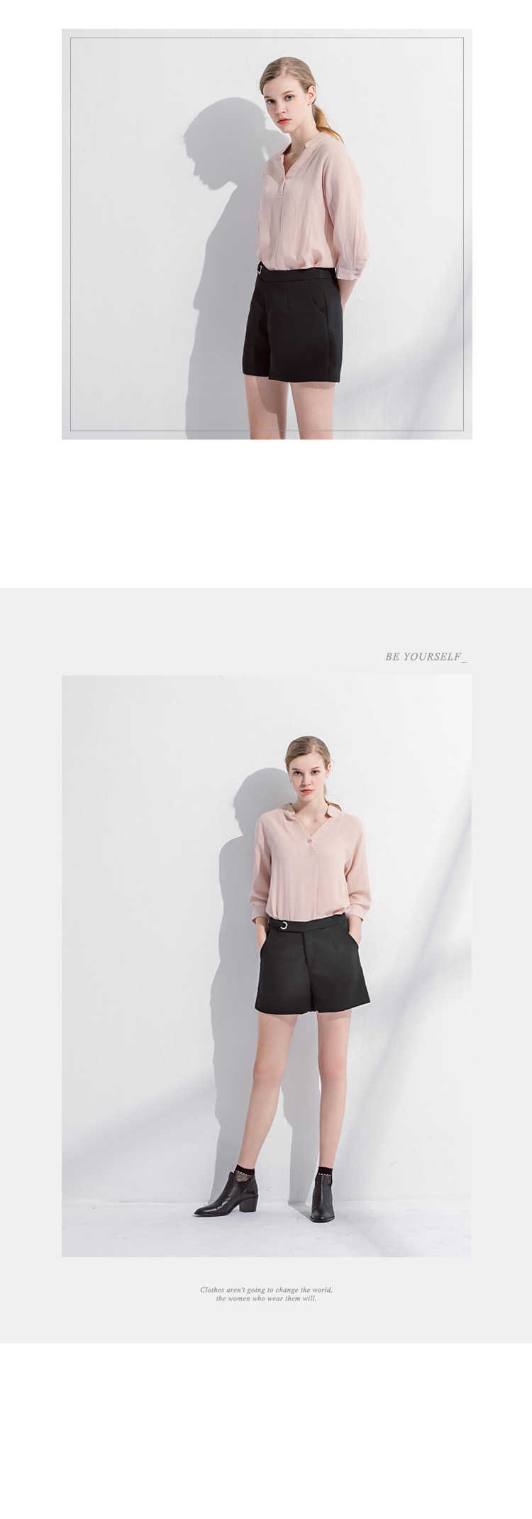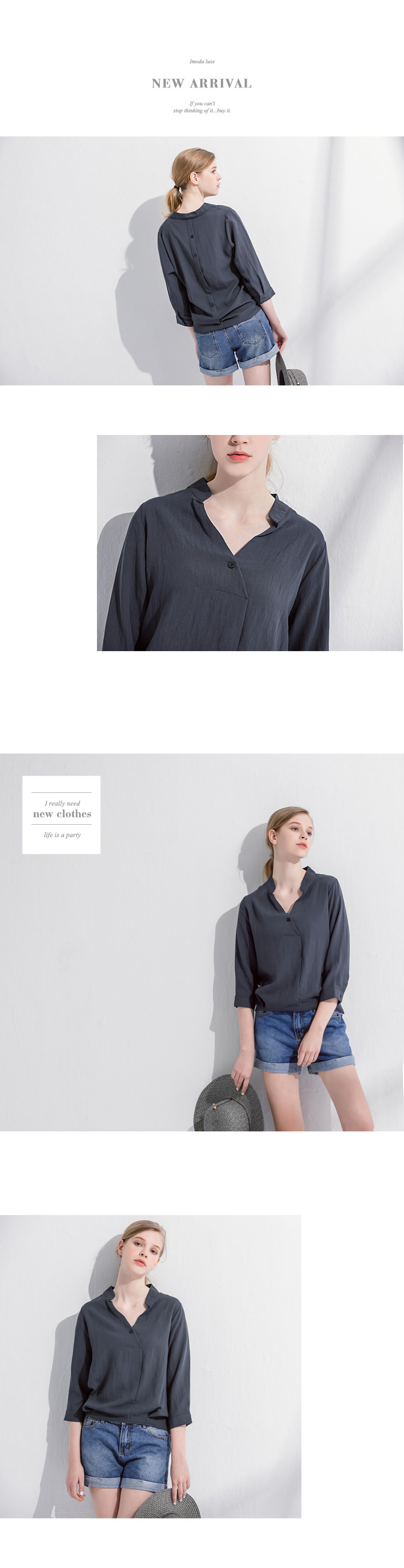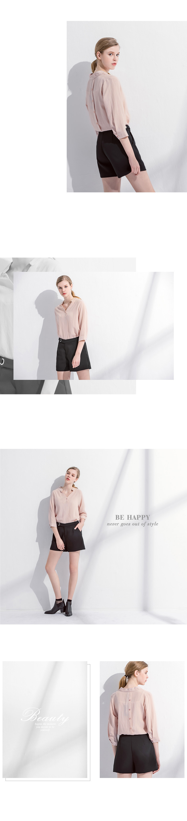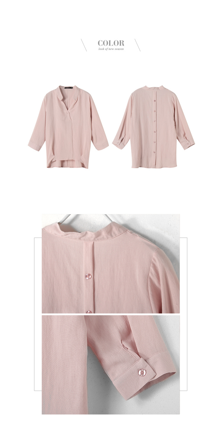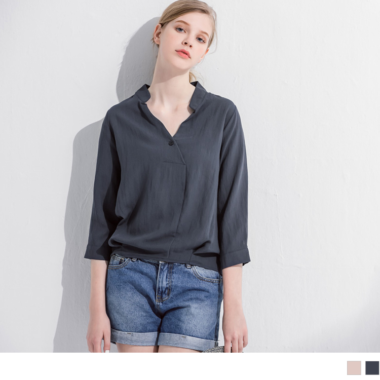 後排釦造型前半開襟七分袖立領上衣.2色