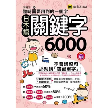 本書收錄各種生活常見情境,並從各種透視角度切入,整理出最常用的關鍵單字6000個,單字是句子的關鍵,只要說出重要的關鍵單字,就算無法完整說出一句話,也能夠和日本人順暢溝通。
